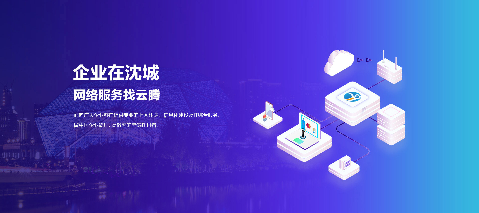 沈陽(yáng)云騰網(wǎng)絡(luò)科技股份有限公司致力于圍繞企業(yè)數(shù)字化進(jìn)程提供一站式網(wǎng)絡(luò)IT支撐服務(wù)。公司自成立起獲批了國(guó)家工信等部門(mén)的ISP互聯(lián)網(wǎng)接入許可、國(guó)內(nèi)呼叫中心許可、質(zhì)管體系ISO9000認(rèn)證,以超高的信譽(yù)評(píng)級(jí)開(kāi)通了銀行托收服務(wù),快速成長(zhǎng)為科技型中小企業(yè)、高新技術(shù)企業(yè)。是國(guó)內(nèi)首家專(zhuān)注為企業(yè)組織提供“數(shù)字組網(wǎng)+聯(lián)網(wǎng)上網(wǎng)+IT安全運(yùn)維”的一站式網(wǎng)絡(luò)服務(wù)模式的開(kāi)創(chuàng)者——聚焦組織的業(yè)務(wù)場(chǎng)景、應(yīng)用場(chǎng)景等提供標(biāo)準(zhǔn)化與定制化服務(wù);讓企業(yè)在不同時(shí)期快速通過(guò)利用數(shù)字化解決方案帶來(lái)的紅利推動(dòng)企業(yè)模式的創(chuàng)新、專(zhuān)注自身業(yè)務(wù)領(lǐng)域提高核心競(jìng)爭(zhēng)力。